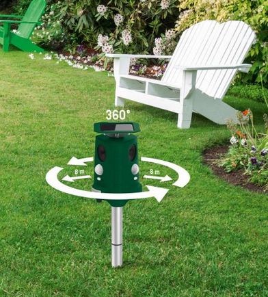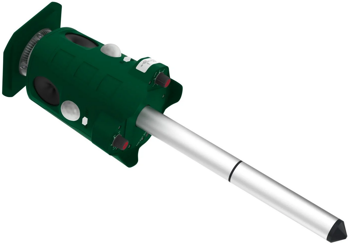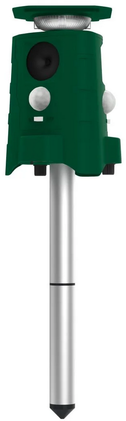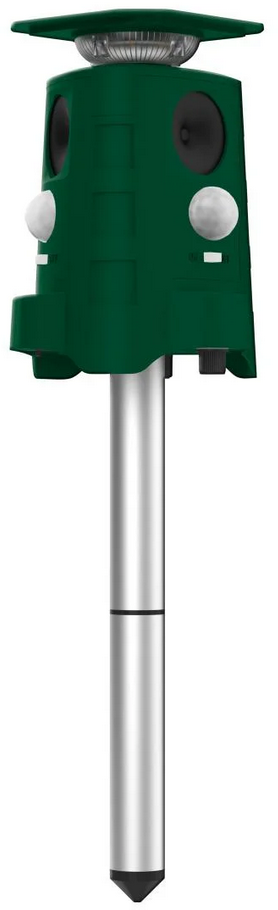 - Działa bez użycia środków chemicznych – dzięki wysokim częstotliwościom dźwiękowym i błyskowi światła odstrasza gryzonie, psy i koty